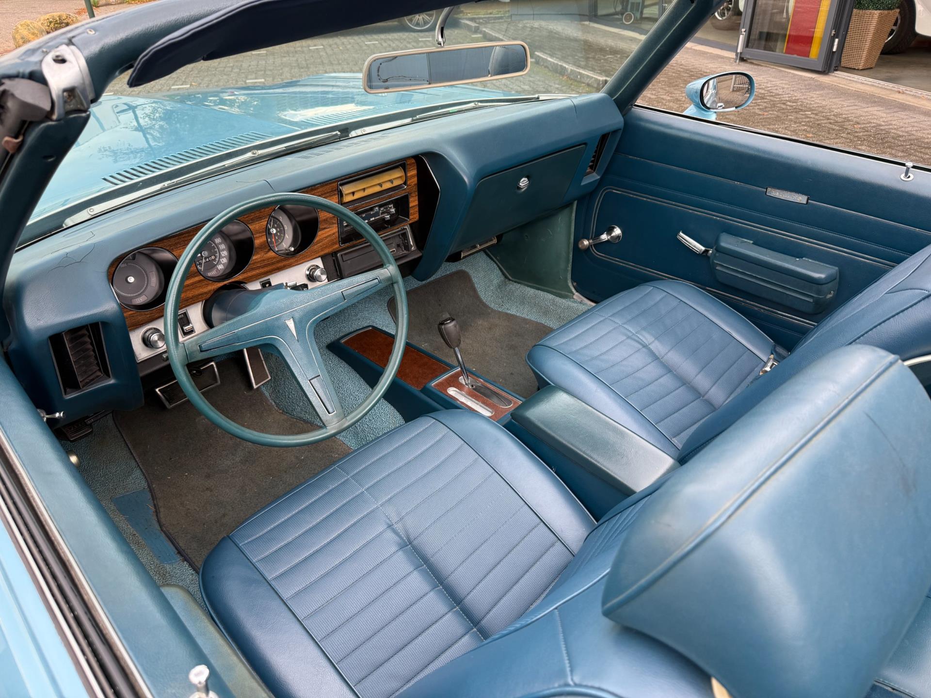 Schitterende Pontiac Le Mans cabriolet van 1971. Belastingvrij en APK vrij. Prachtige auto in metallic blauw met een heel mooi blauw interieur. 350 cubic inch V8 motor met automatische bak. Stuurbekrachtiging en power top. Deze auto is in hele goede staat, zit heel mooi in de lak, en is in goede technische staat.